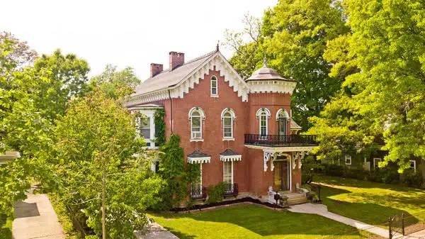 Approaching the property, the stately façade immediately commands attention. Constructed with both brick exterior and interior walls, this home represents an architectural rarity even among historic homes. Its enduring strength and timeless design are evident from the moment you arrive, a reminder that true craftsmanship never goes out of style. Surrounded by other period residences in Adrian’s Historic District, the home stands proudly among its peers, each brick and beam whispering stories of the generations that have called this street home for nearly two centuries.