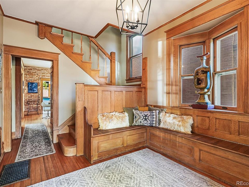 If you love old houses with “good bones” and lots of personality, this 1896 Denver home is going to make you very happy. It is a beautiful mix of a brick Victorian and Mission-style architecture. This is a very special look that you don’t see every day. From the street, the red brick and vintage details tell you right away that this home has been loved for over a hundred years.