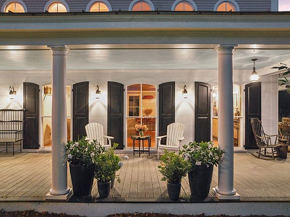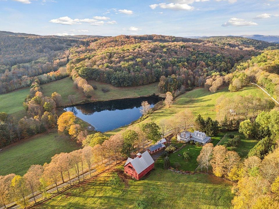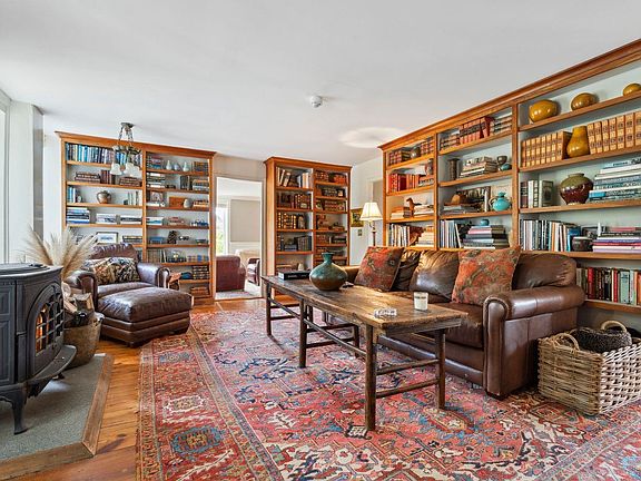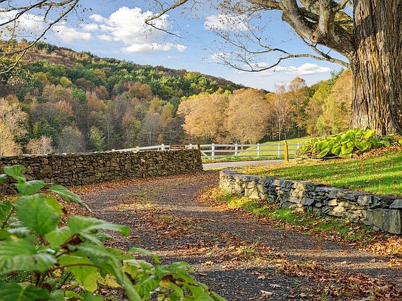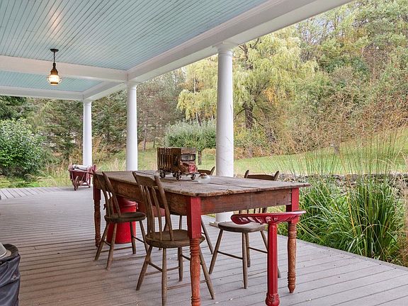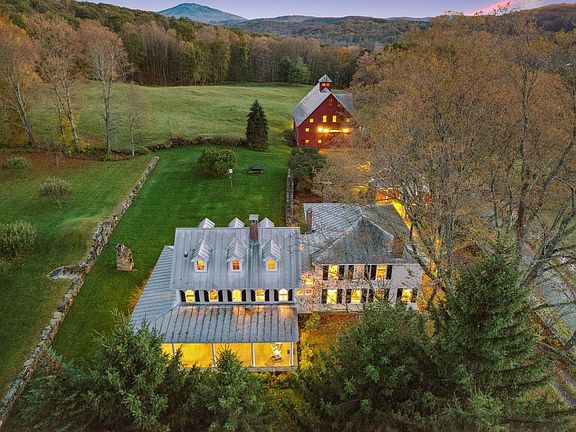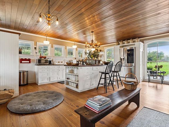 The main house, with four bedrooms and six baths, features a spacious farmhouse kitchen with an inviting sitting area by the fire. For the end of the day, take supper on the porch and soak in the views of the sun setting over the pond. The gardens yield a bountiful harvest of apples and flowers. The barn serves as a home for chickens and livestock, offering ample turnout space as well as a fantastic venue for gatherings, a guest bedroom, office accommodations, and bathroom as well as space for yoga or a gym.