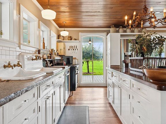 - Key Details: Seven fireplaces, natural woodwork, radiant floor heating, and a massive farmhouse kitchen with a walk-in pantry.