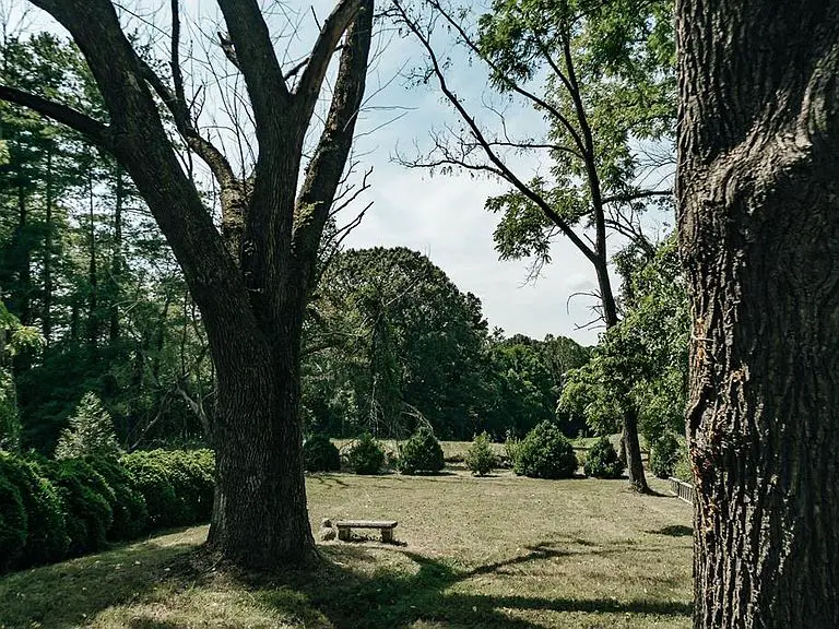 The estate is situated on a generous 1.66-acre level lot, providing an idyllic and private retreat. Located at the very end of a cul-de-sac, it ensures minimal through traffic and maximum tranquility. Mature trees dot the property, offering natural shade and beauty, while the covered front porch provides the perfect vantage point for enjoying quiet mornings. The property benefits from municipal services, with reliable access to public sewer and public water, a modern convenience that complements its historic charm.
