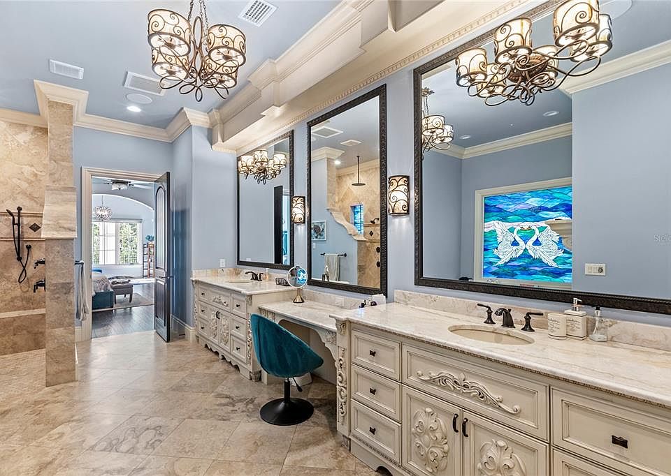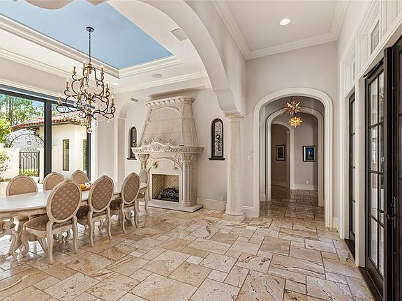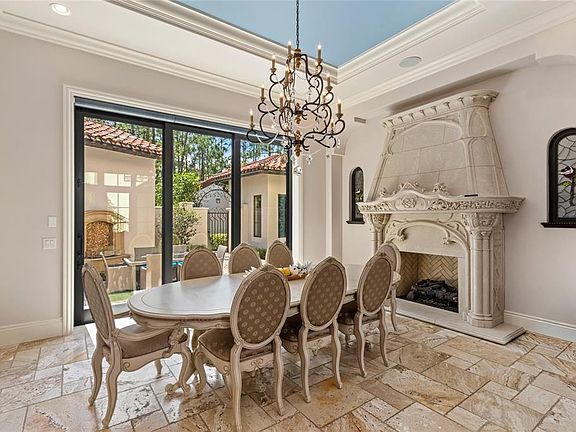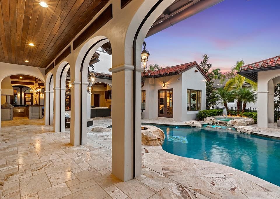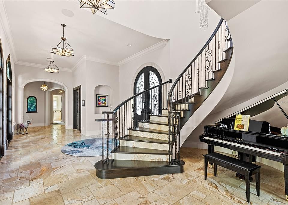 If you are someone who loves houses that feel like they were built by a master storyteller, this estate is going to blow you away. Located inside the famous Golden Oak neighborhood at Walt Disney World Resort, this home is more than just a place to live—it is a work of art. Even though it was built in 2019, it has the grand scale and detail that reminds me of the most beautiful historic Mediterranean mansions. The house sits on a large lot that backs up to a quiet forest area and a peaceful pond. This means you get all the fun of living at Disney with total privacy. When you walk through the front door, the soaring ceilings and the massive crystal chandelier make you feel like you’ve stepped into a palace.