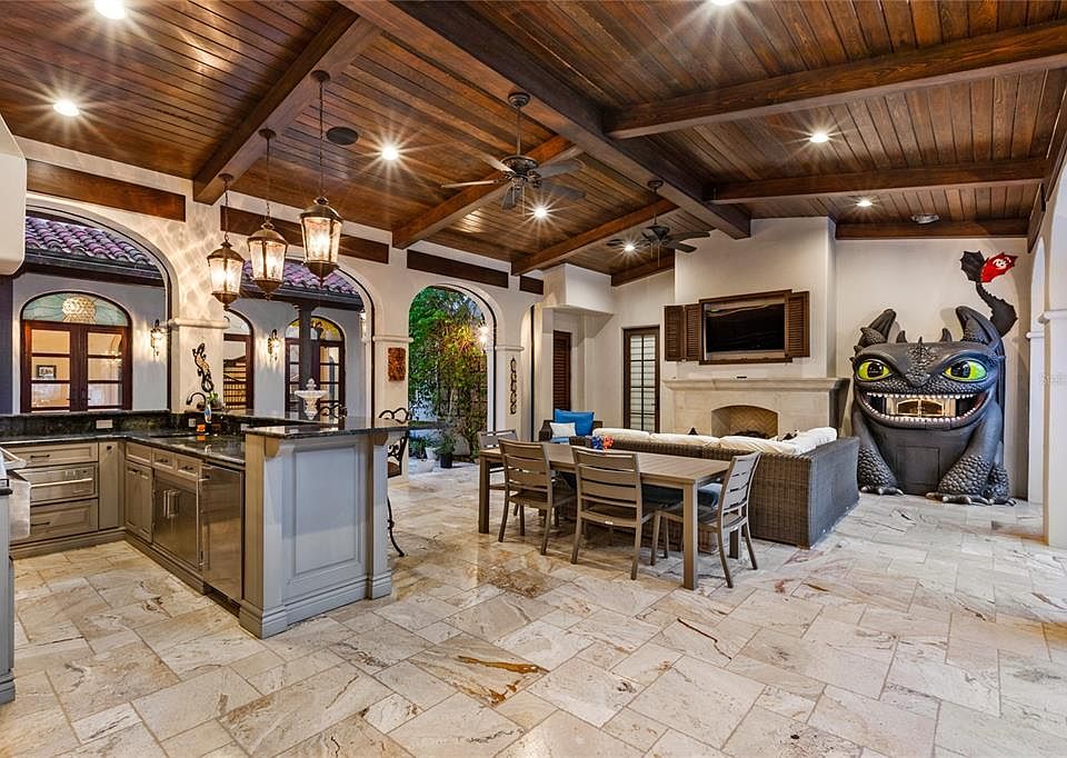 What makes this home truly special are the one-of-a-kind “Easter eggs” hidden throughout. As someone who loves the little details in a house, I was amazed to find a row of Disney-themed stained-glass windows. They cast a beautiful light over the courtyard. There is even a marble fireplace that is an exact replica of the one found in the apartment inside Cinderella’s Castle! For movie lovers, the home features a private theater designed to look like the Millennium Falcon from Star Wars. It is the coolest place I have ever seen to watch a film. There is also a huge game room and even a pizza oven designed after the dragon Toothless. Every corner of this house has a touch of magic that makes it feel alive.