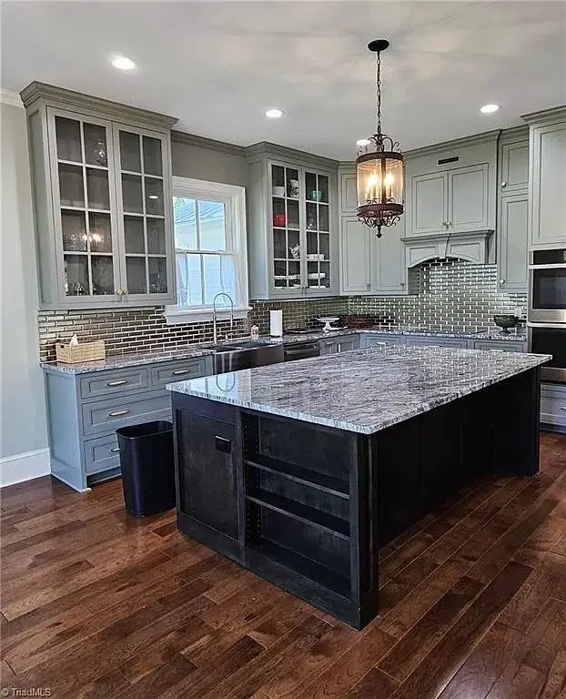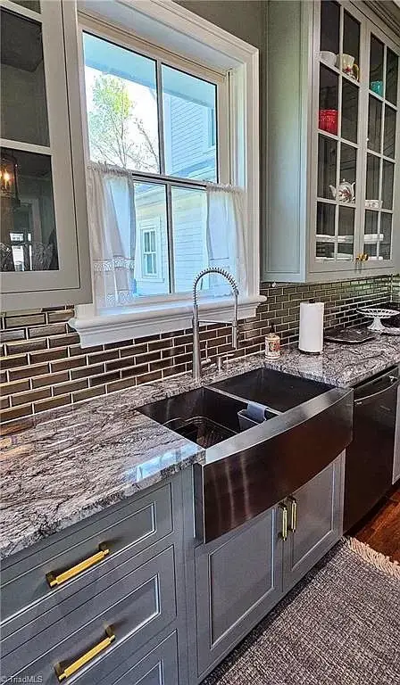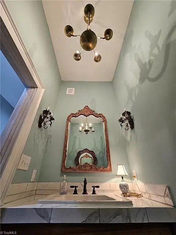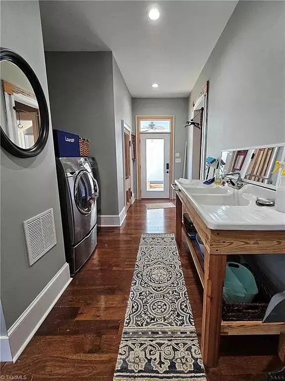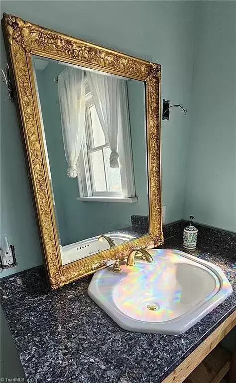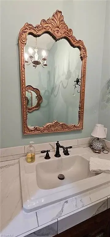 The thoughtfully designed mud/laundry room includes two original vintage sinks, combining utility and historic flair. Just off this space, a beautifully appointed half bath adds convenience for guests.