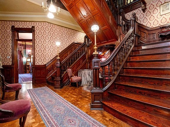 - Unique Features: 3.5-story corner tower, octagonal-shaped rooms, and a rare divided stairway.