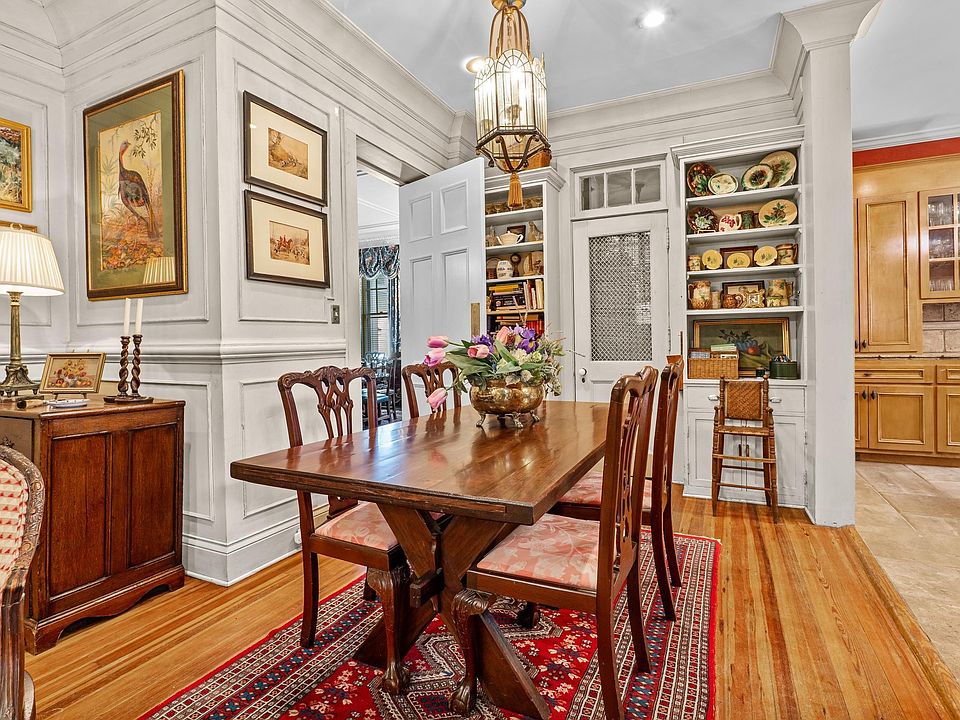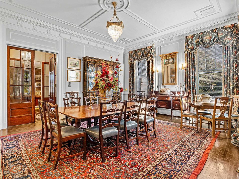 - Architectural Details: High ceilings (9ft+), crown molding, built-in bookcases, and a central vacuum system.