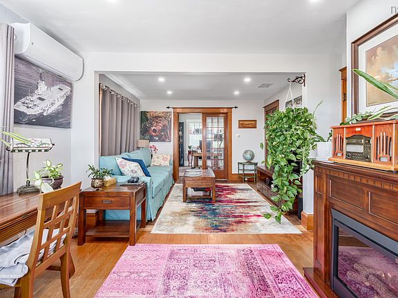 - Living Area: Sun-filled living and dining room with French doors
