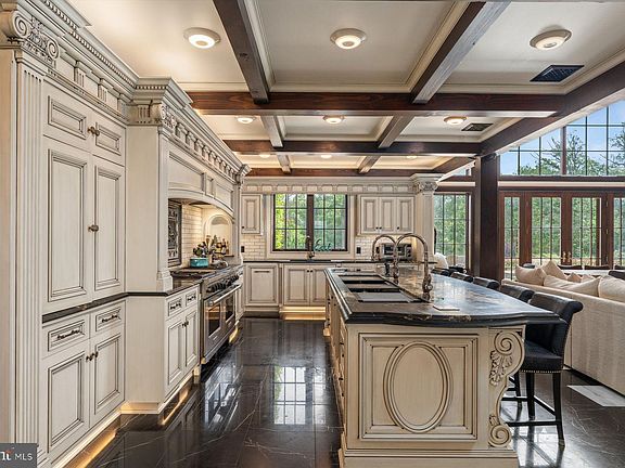 Every culinary detail has been thoughtfully considered. Two dishwashers, a warming drawer, double ovens with a six-burner range and griddle, an induction cooktop, and a butler’s pantry ensure seamless entertaining. The walk-in pantry and additional catering kitchen—equipped with a Sub-Zero refrigerator, ice machine, and convection ovens—provide unmatched convenience.