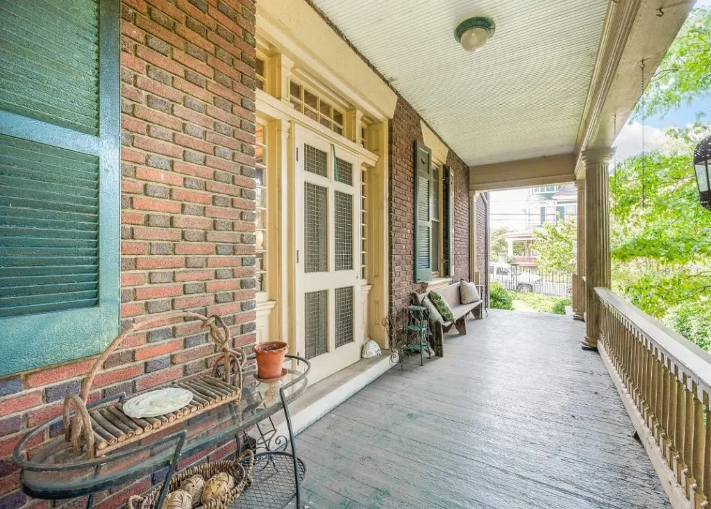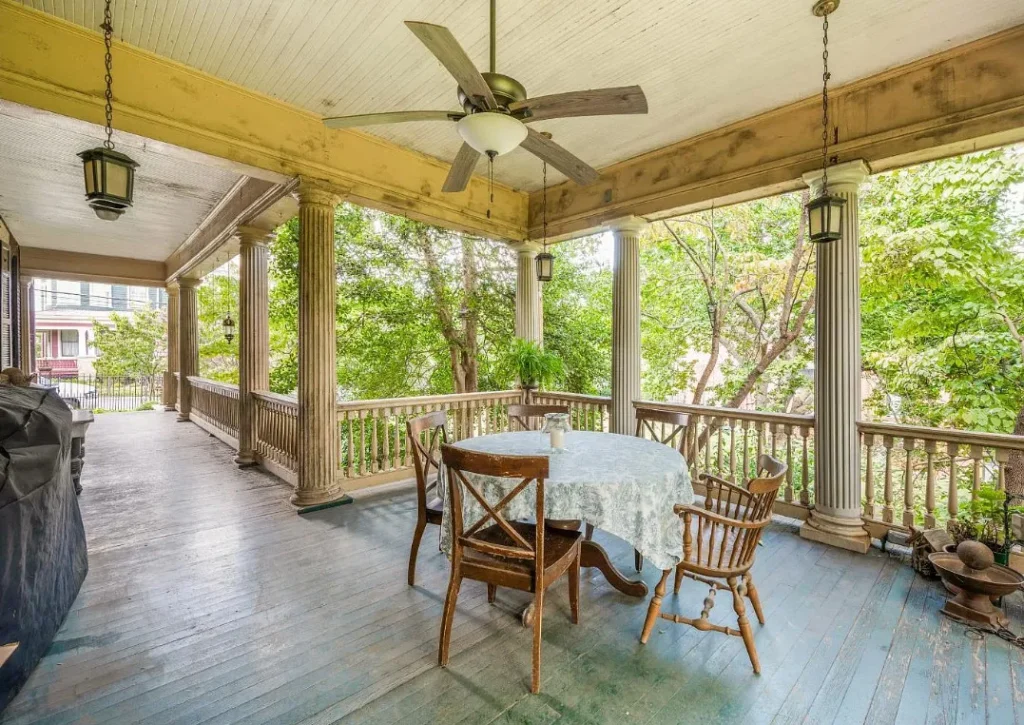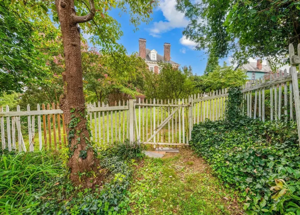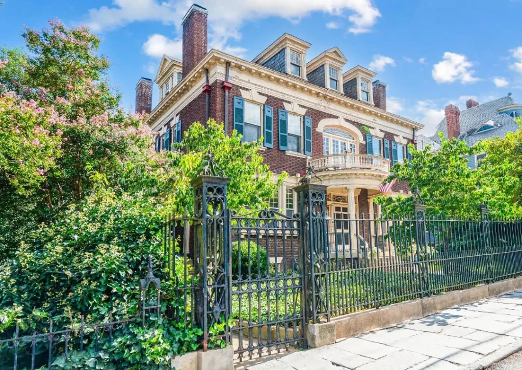 Nestled on a .54-acre lot, the property is enclosed by an elegant wrought iron fence that complements the home’s classic architecture. The grand façade is enhanced by wide porches and intricate detailing that speak to its early 20th-century origins. Mature landscaping and a spacious backyard add to the serene, private setting — perfect for entertaining or simply enjoying quiet afternoons in a piece of history.