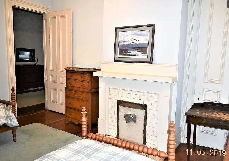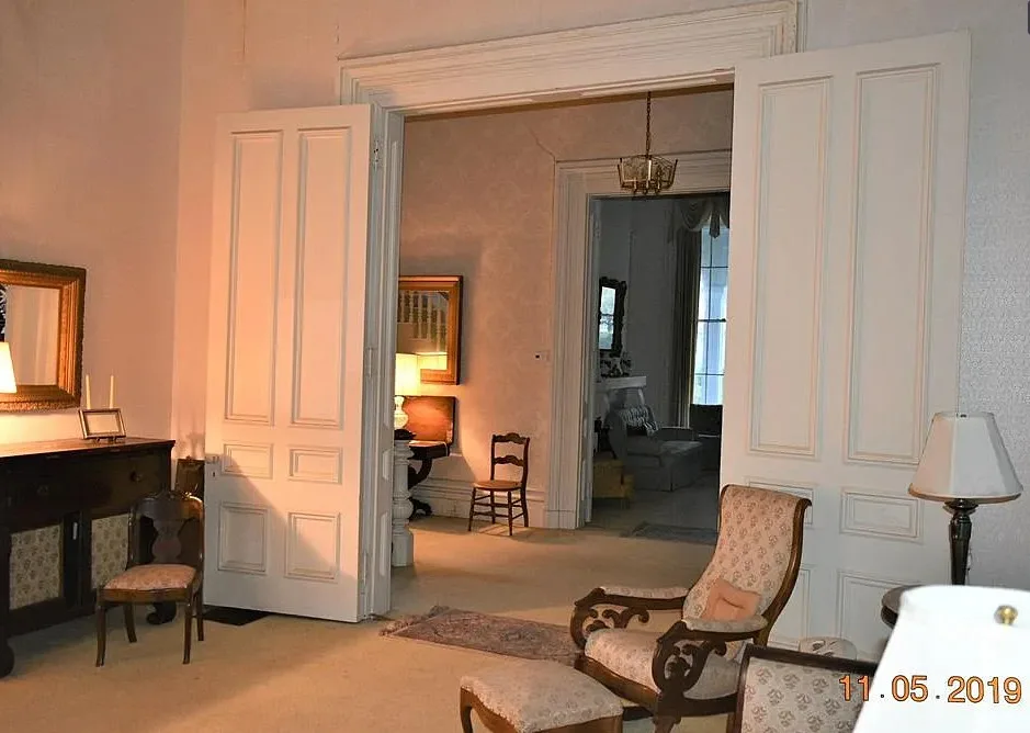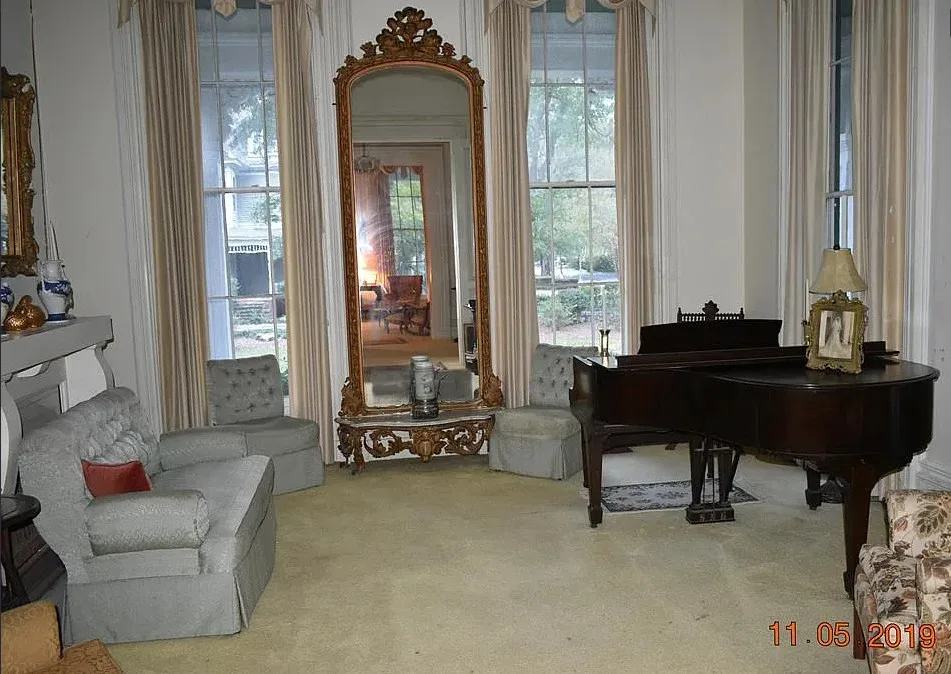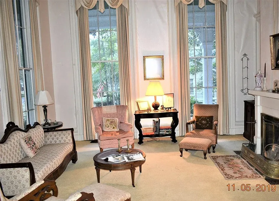 Built just after the Civil War, the home carries more than 150 years of history within its walls. Every element—from the tall ceilings to the rich millwork—reflects craftsmanship from an era when details mattered. The double front doors offer a stately entrance, hinting at the generous proportions and architectural flourishes found throughout the interior. Original jib windows, a hallmark of 19th-century Southern design, further enhance the home’s authenticity, allowing the lower sash to open into the wall for increased airflow—an ingenious feature before the days of modern cooling.
