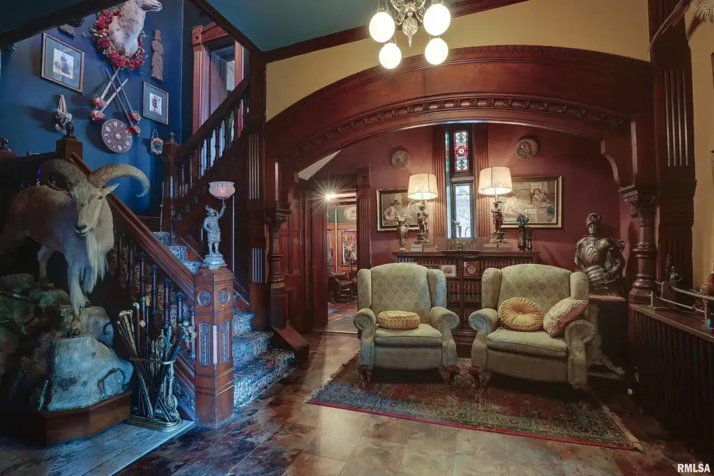 Today, as it enters a new chapter, this grand estate invites a new steward to shape its future. Whether restored to its full period elegance or thoughtfully adapted for contemporary life, its essence will always remain—rooted in history, elevated by artistry, and defined by permanence. With every stone and beam still bearing the marks of its maker, the Meriam Mansion endures as one of Quincy’s greatest architectural legacies and one of the most unique historic homes currently for sale in Illinois.
