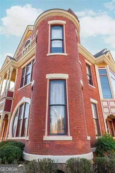 Outdoors, the property continues to impress. The surrounding grounds are meticulously maintained, featuring mature trees, manicured landscaping, and inviting spaces that mirror the home’s elegance. The wraparound porch, typical of Victorian design, offers a perfect place to relax and enjoy the charm of downtown Dalton. Whether envisioned as a private retreat or a gathering place for guests and clients, the outdoor setting enhances the property’s timeless appeal.