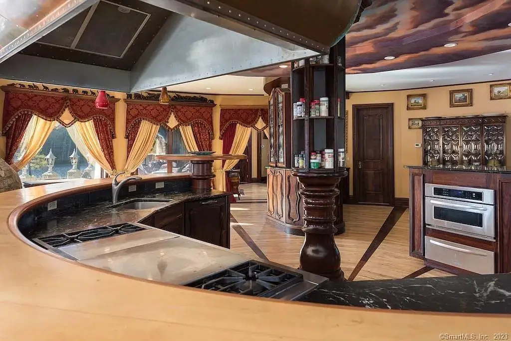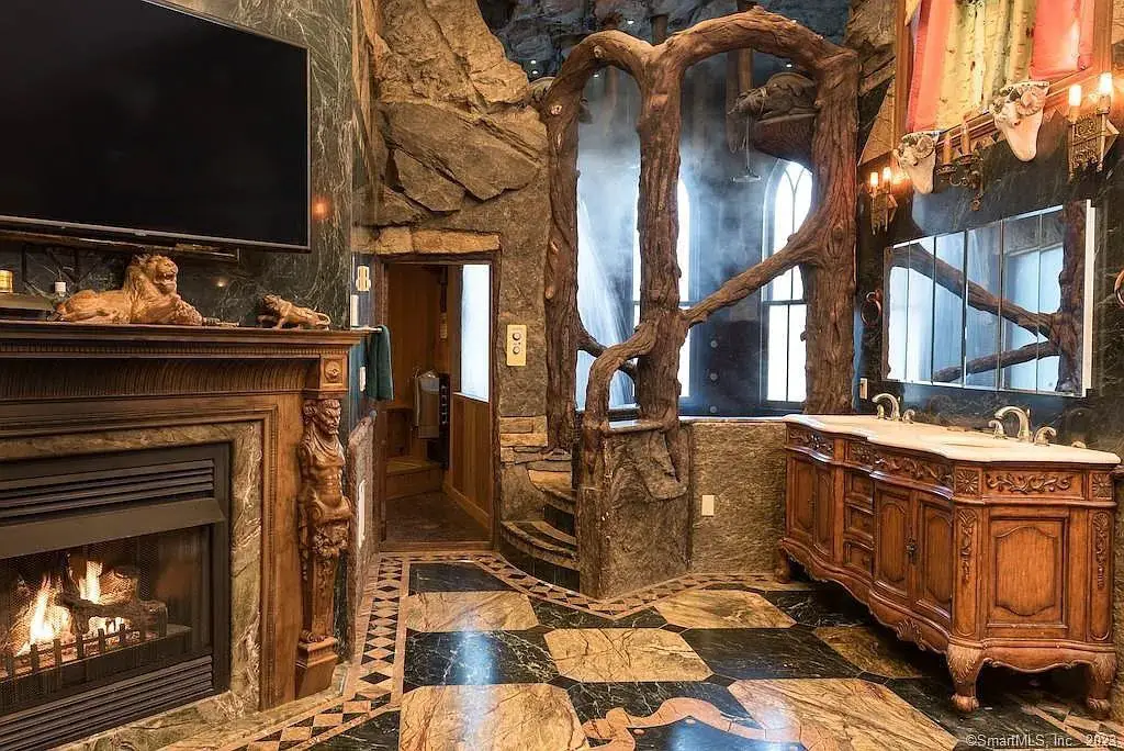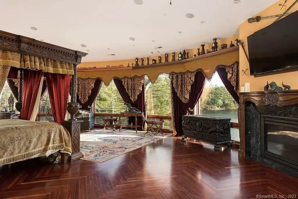 - Public Rooms: The castle boasts multiple grand entertaining rooms, a massive bespoke kitchen with top-of-the-line appliances, and a large stone fireplace overlooking scenic Potter Pond.