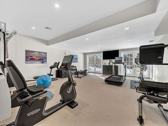 The second floor is all about comfort. The primary suite is a total retreat with a spa-like bathroom and a closet big enough for any wardrobe. There are also three more bedrooms, and each one has its own private bathroom! The fun continues in the walkout basement. You’ll find a recreation room with a wet bar, a private gym, and even a media room for movie nights. Outside, the bluestone terraces look over the beautifully landscaped yard, making it the perfect spot for summer dinners. This home isn’t just a house; it’s a lifestyle of pure comfort and beauty.