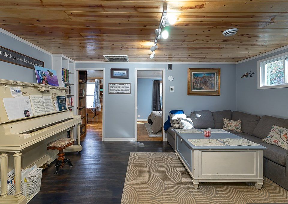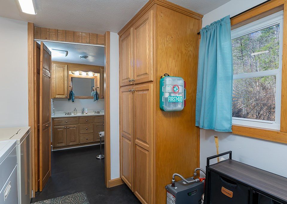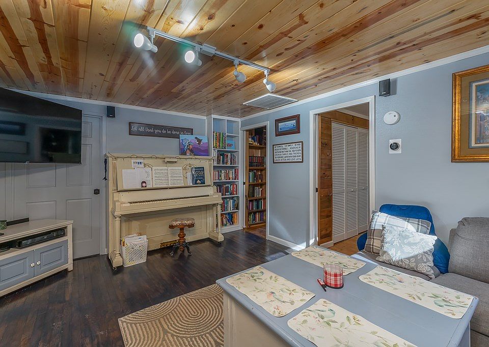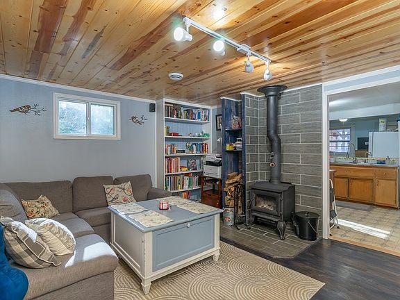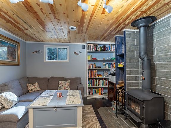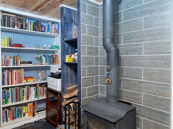 - Upper Home Features: Features a tongue-and-groove ceiling, wood stove, entry foyer with built-in storage, and fiber internet availability.
