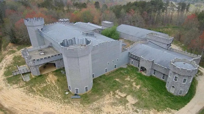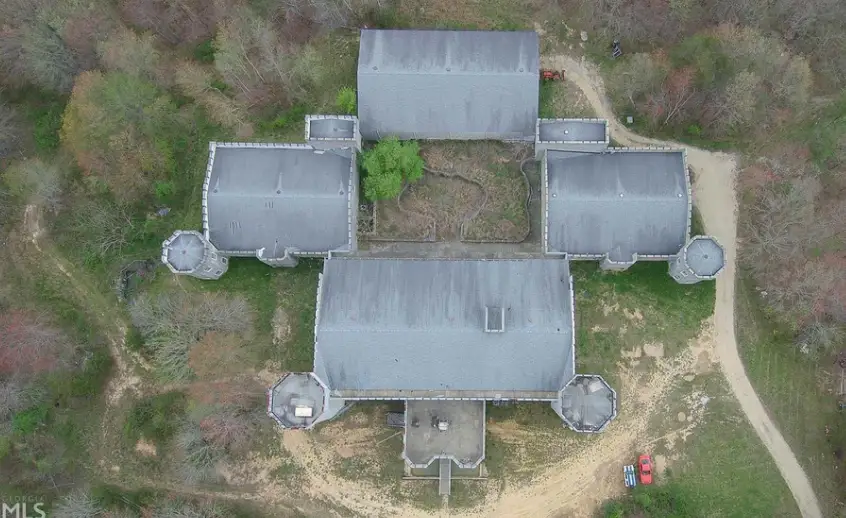 This extraordinary, castle-inspired estate is located at 33300 Highway 157 in Menlo, Georgia, nestled on more than 240 acres of private land. Spanning an impressive 57,000 square feet, the property features approximately 18,000 square feet of completed living space, leaving ample opportunity for customization and finishing touches.